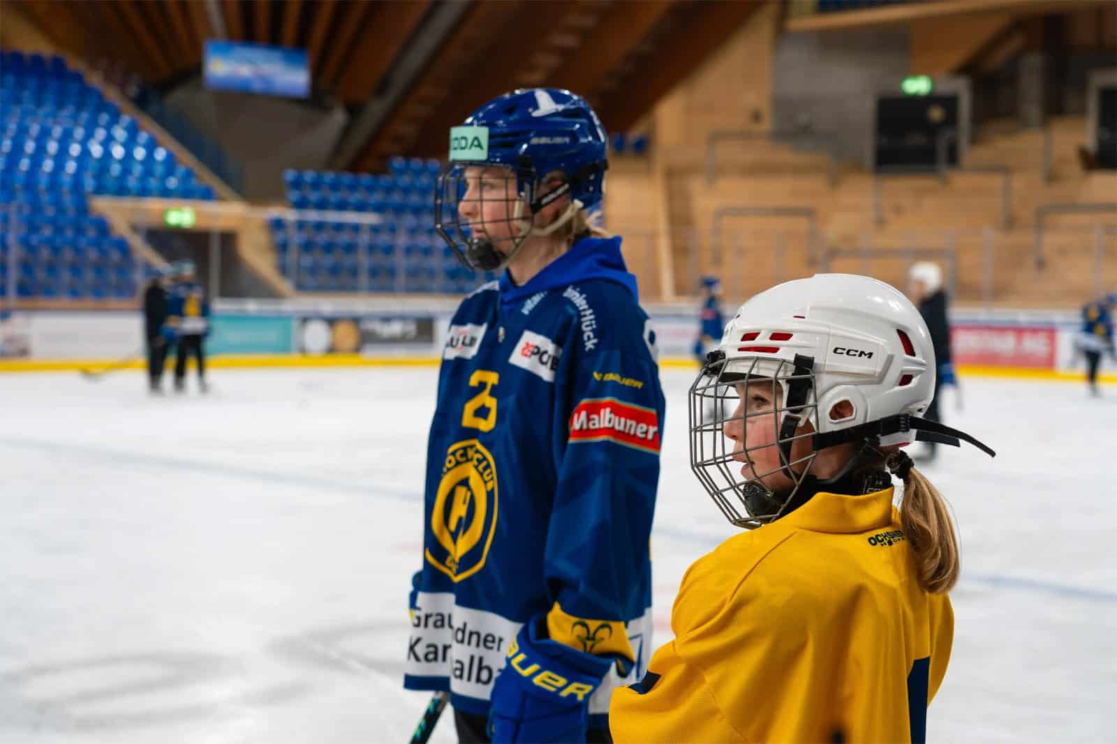«Wir können über alles sprechen, das geht mit den Jungs nicht», erzählt Flurina Zerr, die beim HCD in der U12 spielt. Sie ist am Nachmittag, kurz nach 15.00 Uhr, sichtlich müde. «Es war streng, aber sehr cool», sagt sie etwas schüchtern, während ihre kleinere Schwester Uljana vom Spieluhr-Häuschen aus zuschaut und winkt. Auch sie spielt in der U9 des HCD, während die älteste der Schwestern mittlerweile als Goalie im Nachwuchs in Übersee spielt. Die Mutter engagiert sich ehrenamtlich. Drei Mädchen – alle spielen sie Eishockey aus Leidenschaft. Und wie viele der am Samstag auf dem Eis stehenden Girls mit dem Ziel, es ganz nach oben zu schaffen.