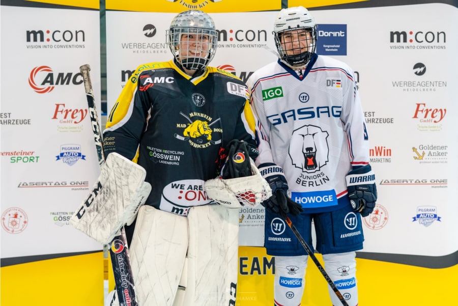Die letzten Begegnungen in der Vorsaison verloren unsere Mad Dogs-Frauen, doch zur neuen Saison beginnt bekanntlich alles wieder bei 0:0, nicht nur aufgrund geänderter Kader beider Teams. Die Hausherrinnen waren früh spielbestimmend und überwiegend in Scheibenbesitz, Torschüsse ergaben sich aber nur wenige, auch weil die Berlinerinnen den Bereich um Keeperin Lilly Günther zuzustellen versuchten. Die Gäste verlegten sich eher aufs Kontern. Dennoch spiegelte das Torschussverhältnis von 8:3 zugunsten Mannheims die Kräfteverhältnisse wider. Der Stand zur ersten Pause: besagtes 0:0, auch weil die einzige Berliner Unterzahl nicht genutzt wurde.